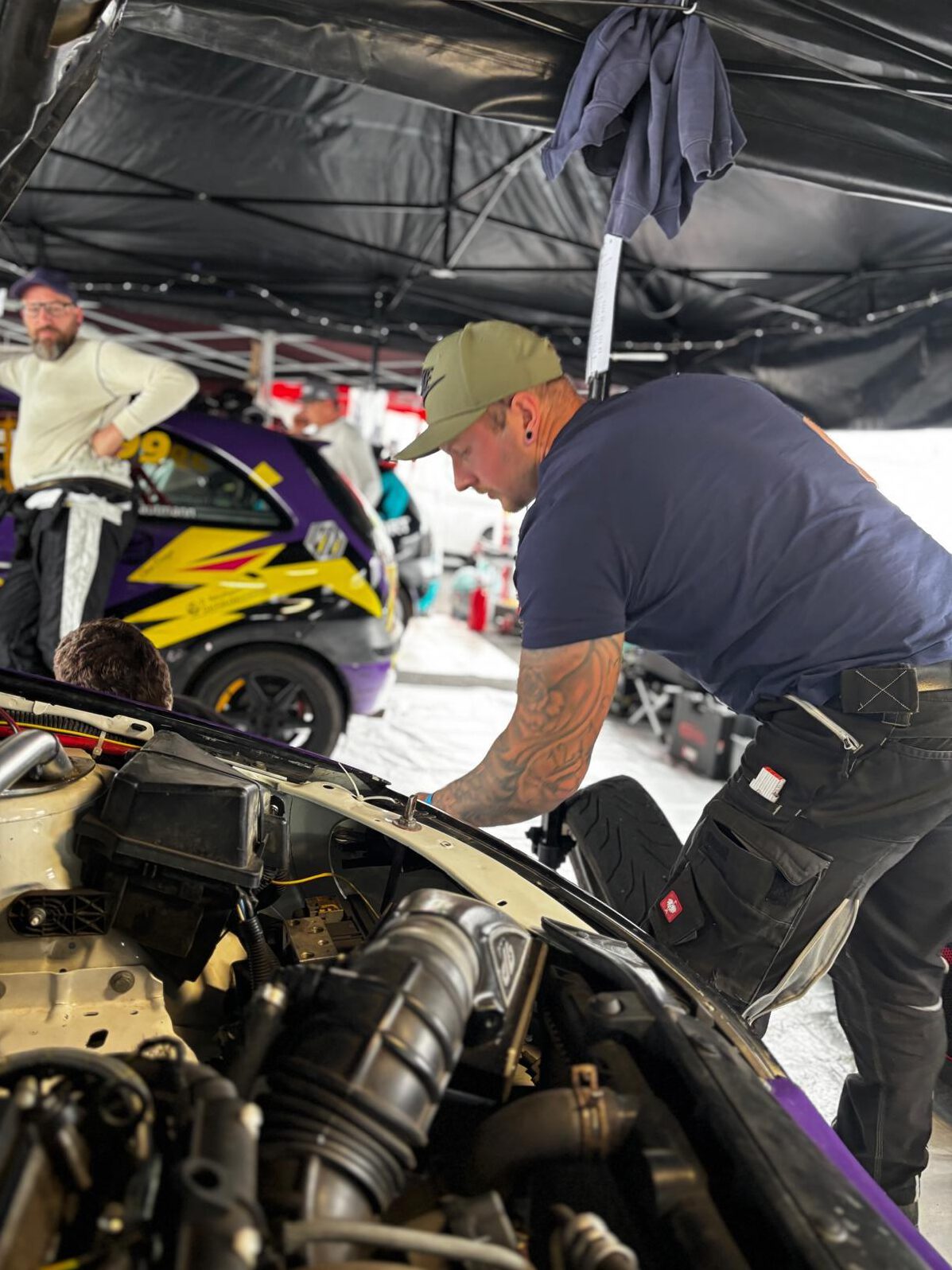 Florian haben wir über sein Instagram-Profil kennengelernt – und schnell gemerkt: Der Mann passt wie die Faust aufs Auge ins Team. Er ist ein absolut zuverlässiger Mechaniker, der unsere Rennboliden vor jedem Heat bis ins kleinste Detail vorbereitet. Nichts entgeht seinem Blick, kein Teil bleibt ungecheckt.